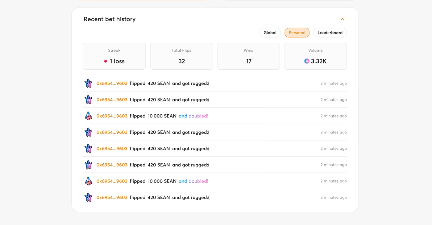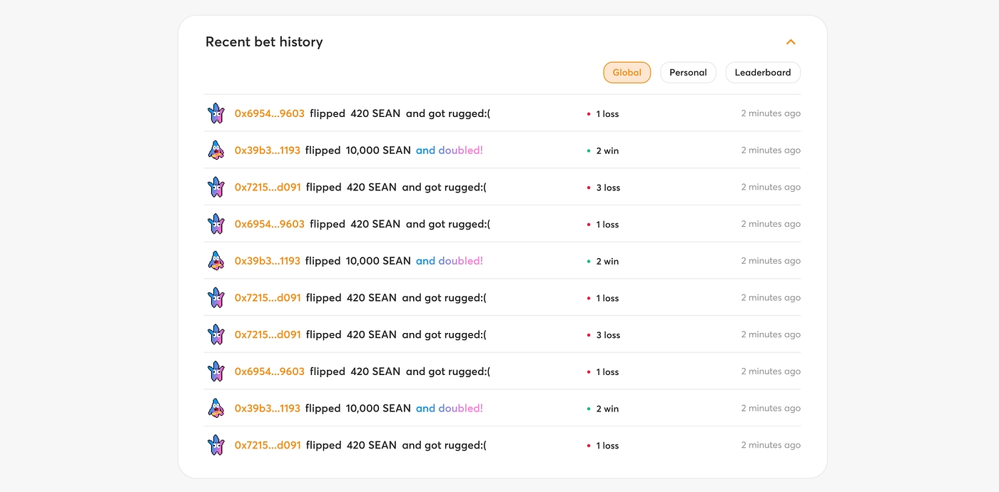The Coin Flip game will be launched first on Arbitrum One, supporting $SEAN and $ARB in the initial stage. The Starfish team will consider onboarding other tokens for the users to play this game in the future.