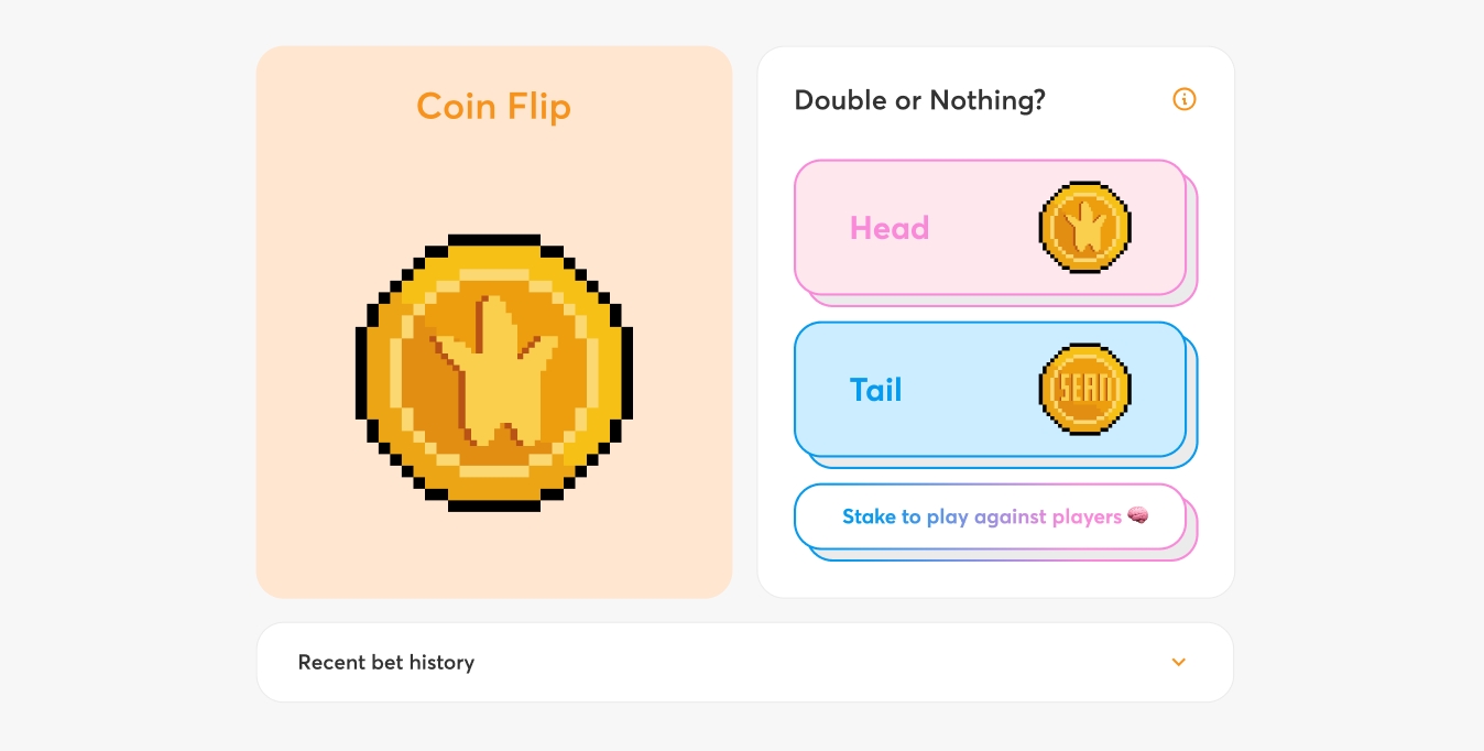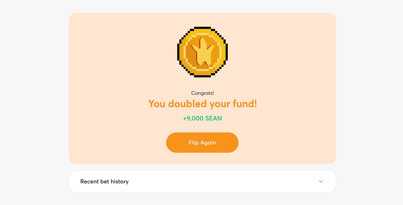 Simply click on the ‘heads’ or ‘tails’ to get started, and the player can always change their mind before confirming the transaction.