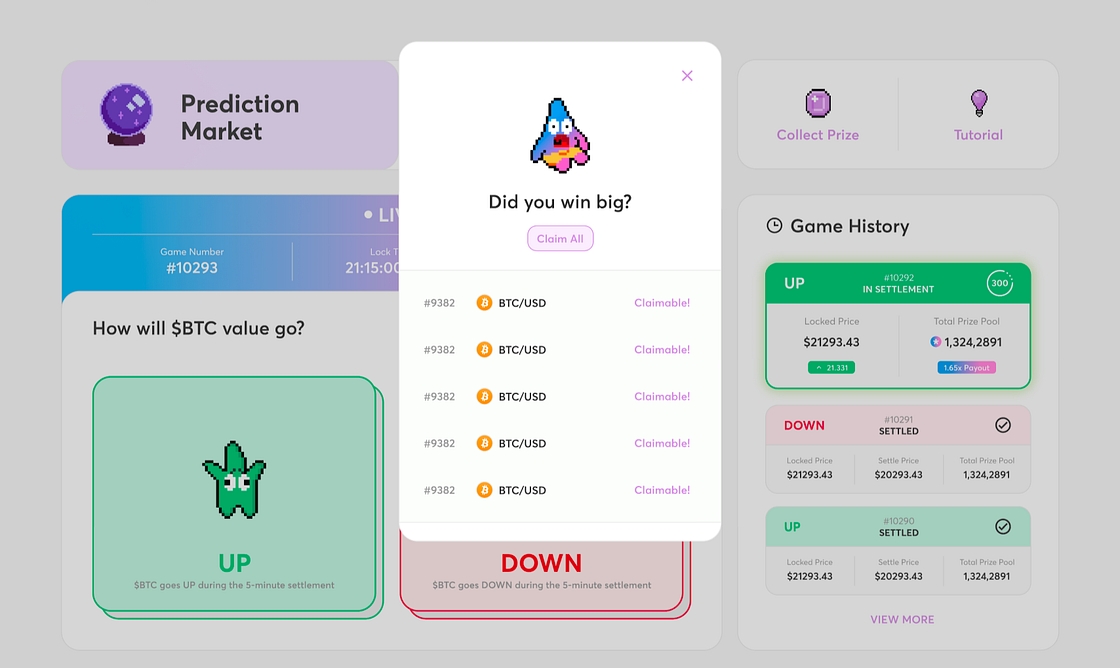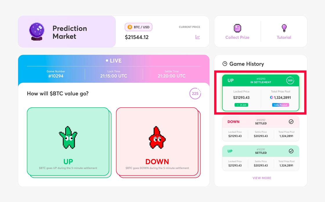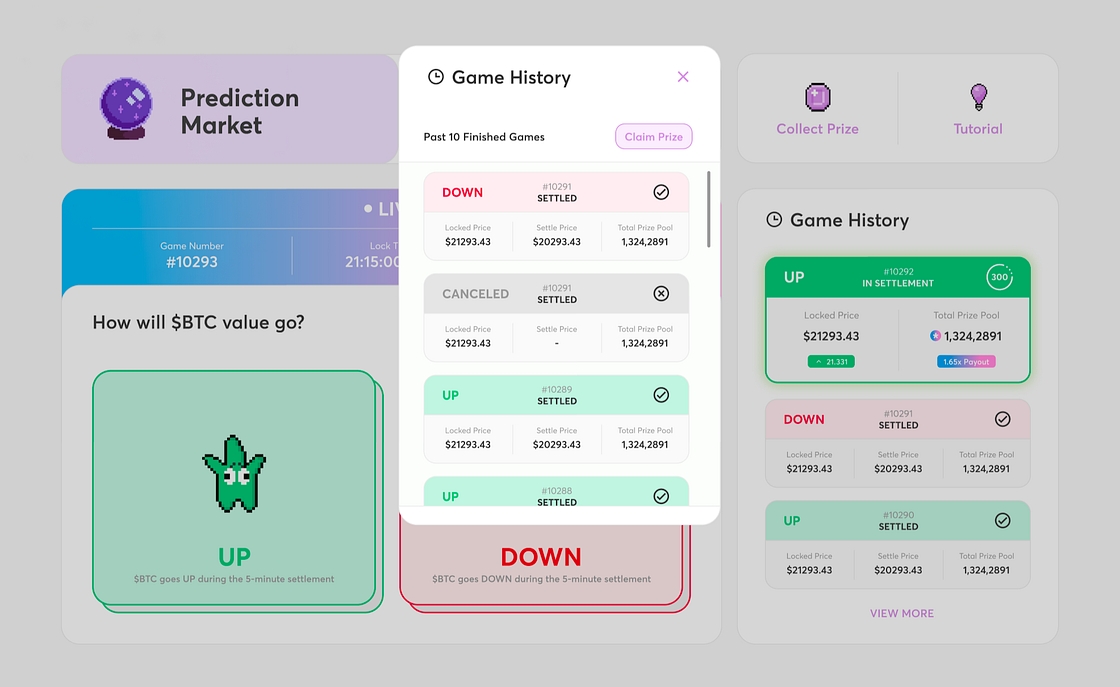 If you win your round, you can click Collect Prize button on the top right corner, and a pop-up window will show up. It shows the entire game history of a player. Click Claim All to move them into your wallet! 😍